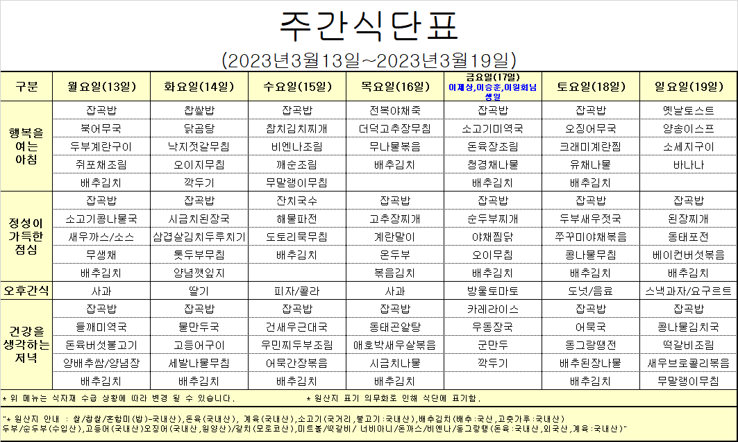 3¿ù3°ÁÖ ½Ä´ÜÇ¥ÀÔ´Ï´Ù.