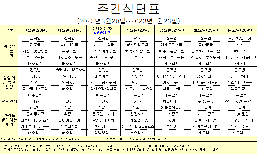 3¿ù4°ÁÖ ½Ä´ÜÇ¥ÀÔ´Ï´Ù.