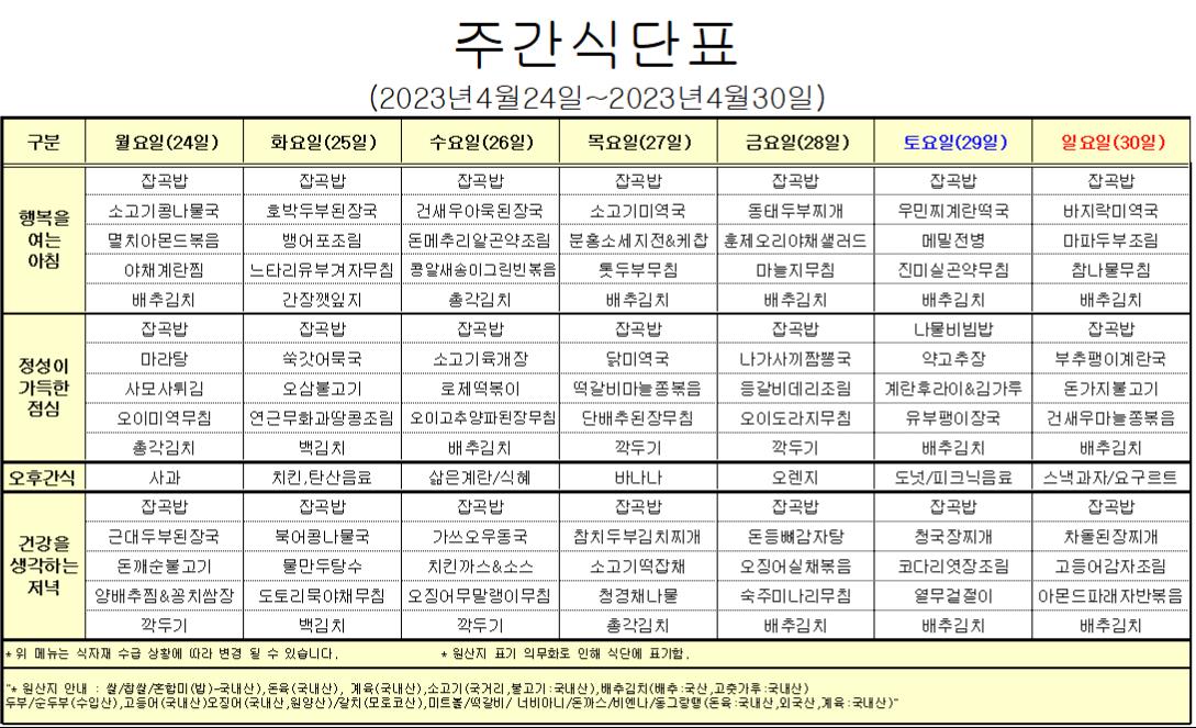 4¿ù 4°ÁÖ ½Ä´ÜÇ¥ ÀÔ´Ï´Ù.