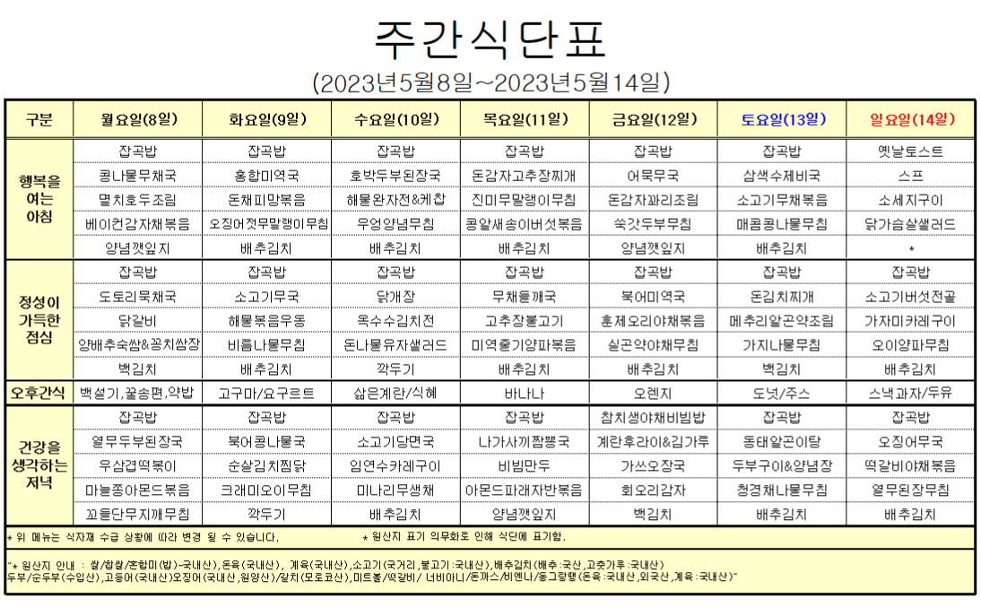 5¿ù2°ÁÖ ½Ä´ÜÇ¥ ÀÔ´Ï´Ù.