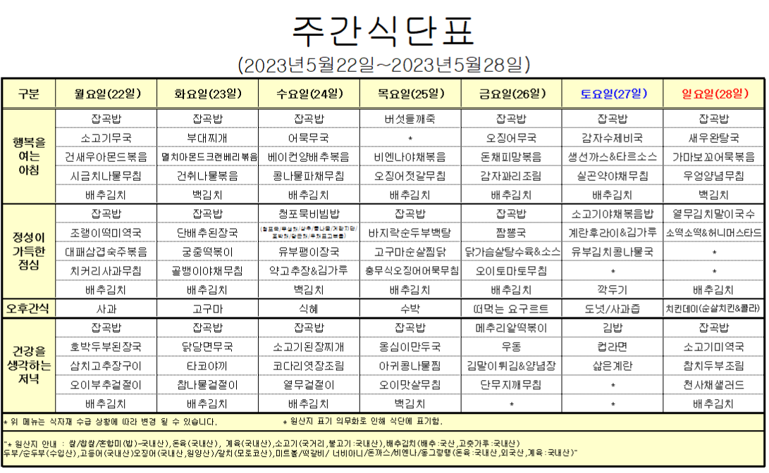 5¿ù4°ÁÖ ½Ä´ÜÇ¥ ÀÔ´Ï´Ù.