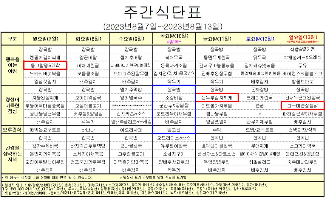8¿ù 2°ÁÖ ½Ä´ÜÇ¥ ÀÔ´Ï´Ù.