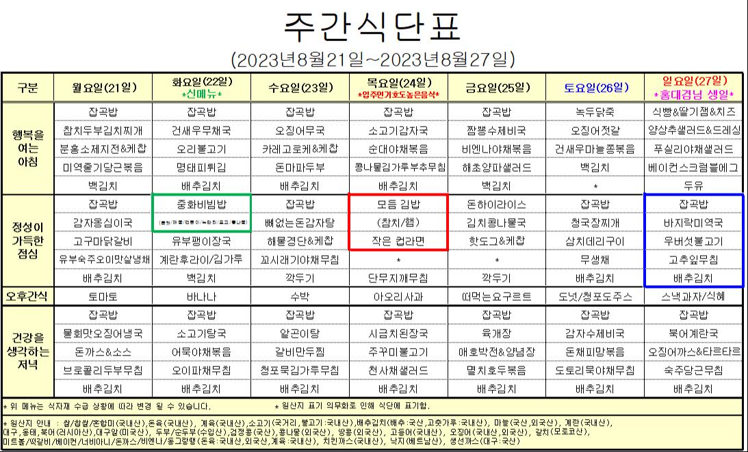 8¿ù 4°ÁÖ ½Ä´ÜÇ¥ ÀÔ´Ï´Ù.