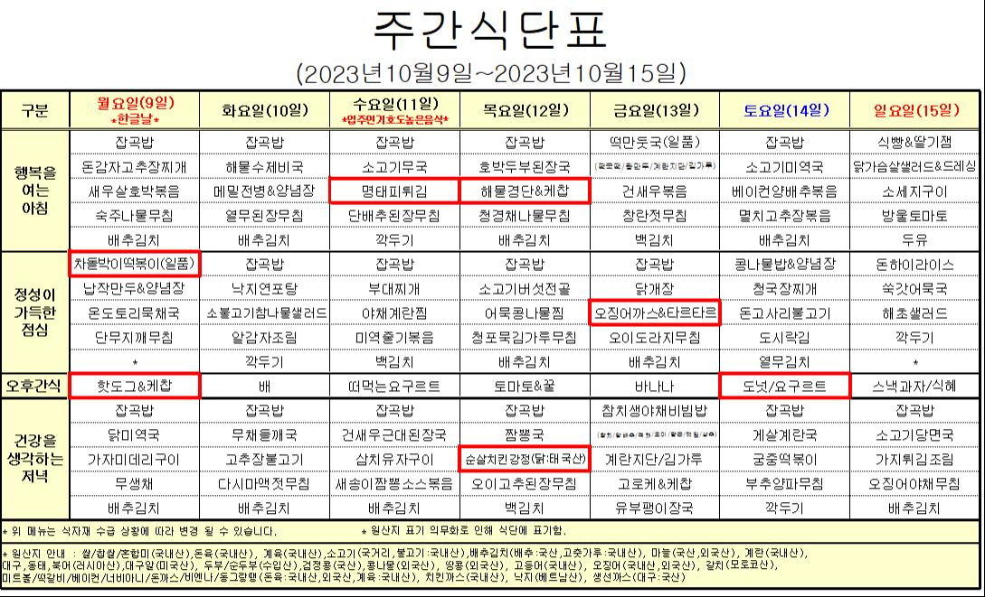 10¿ù 2°ÁÖ ½Ä´ÜÇ¥ ÀÔ´Ï´Ù.
