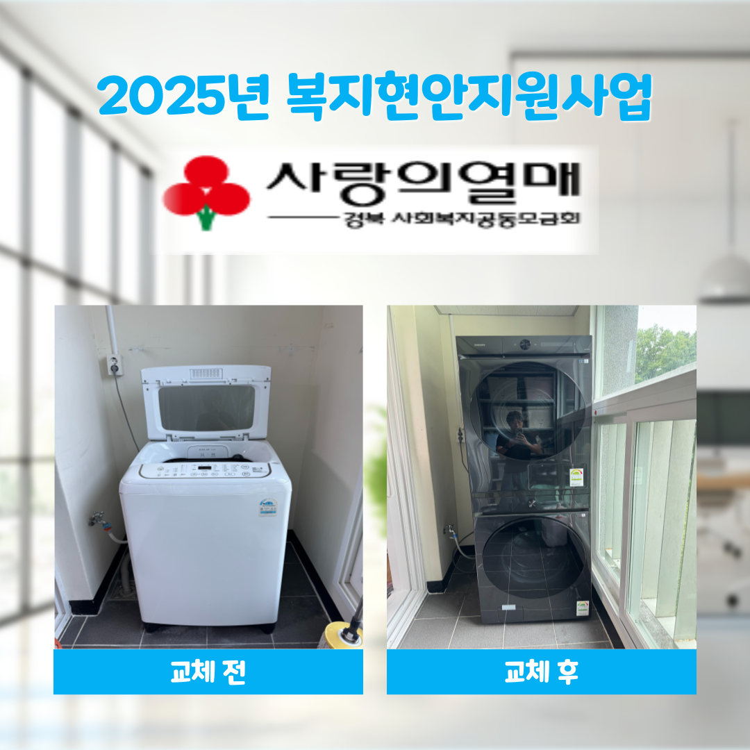 2025³â °æ»óºÏµµ°øµ¿¸ð±Ýȸ º¹ÁöÇö¾ÈÁö¿ø»ç¾÷¿¡ ¼±Á¤µÇ¾î, 1õ¸¸¿øÀ» Áö¿ø¹Þ¾Æ °¢ »ýȰ½ÇÀÇ ¼¼Å¹±â¿Í °ÇÁ¶±â¸¦ ¼³Ä¡ÇÏ¿´½À´Ï´Ù.