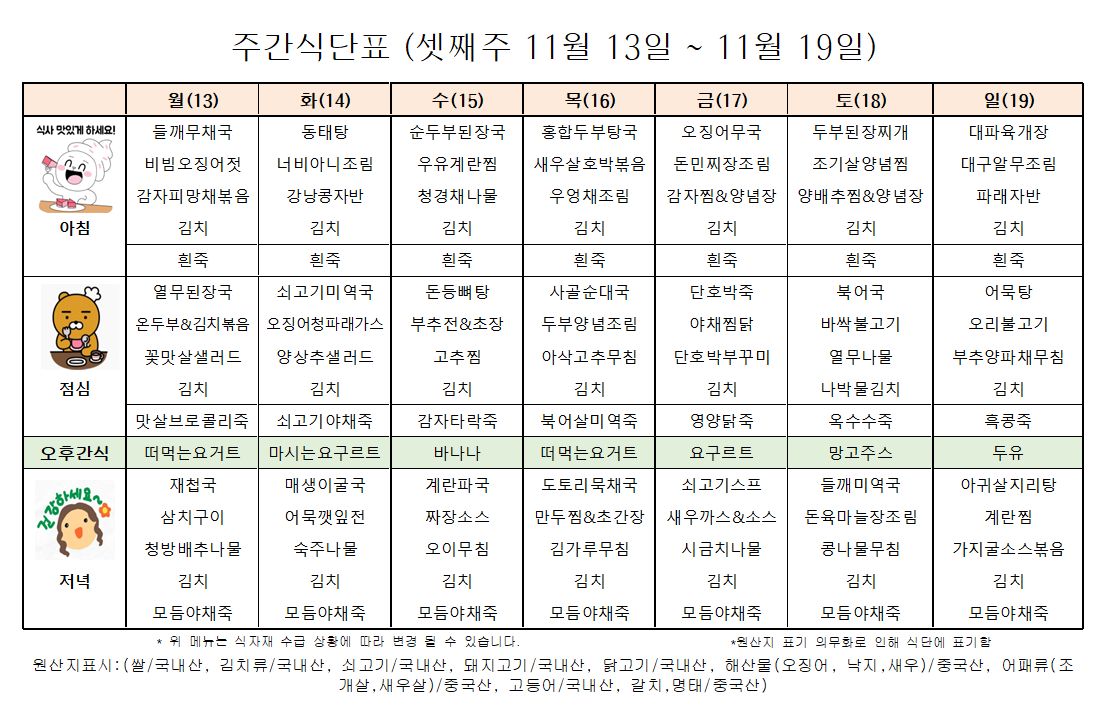ÇູÇѸ¶À» 11¿ù ¼Â°ÁÖ ½Ä´ÜÇ¥ ÀÔ´Ï´Ù