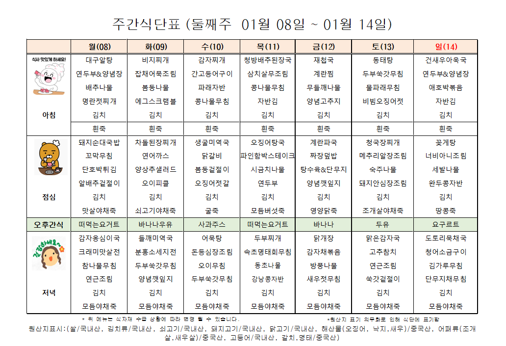 ÇູÇѸ¶À» 01¿ù µÑ°ÁÖ ½Ä´ÜÇ¥ ÀÔ´Ï´Ù