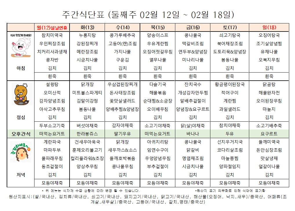 ÇູÇѸ¶À» 02¿ù µÑ°ÁÖ ½Ä´ÜÇ¥ ÀÔ´Ï´Ù
