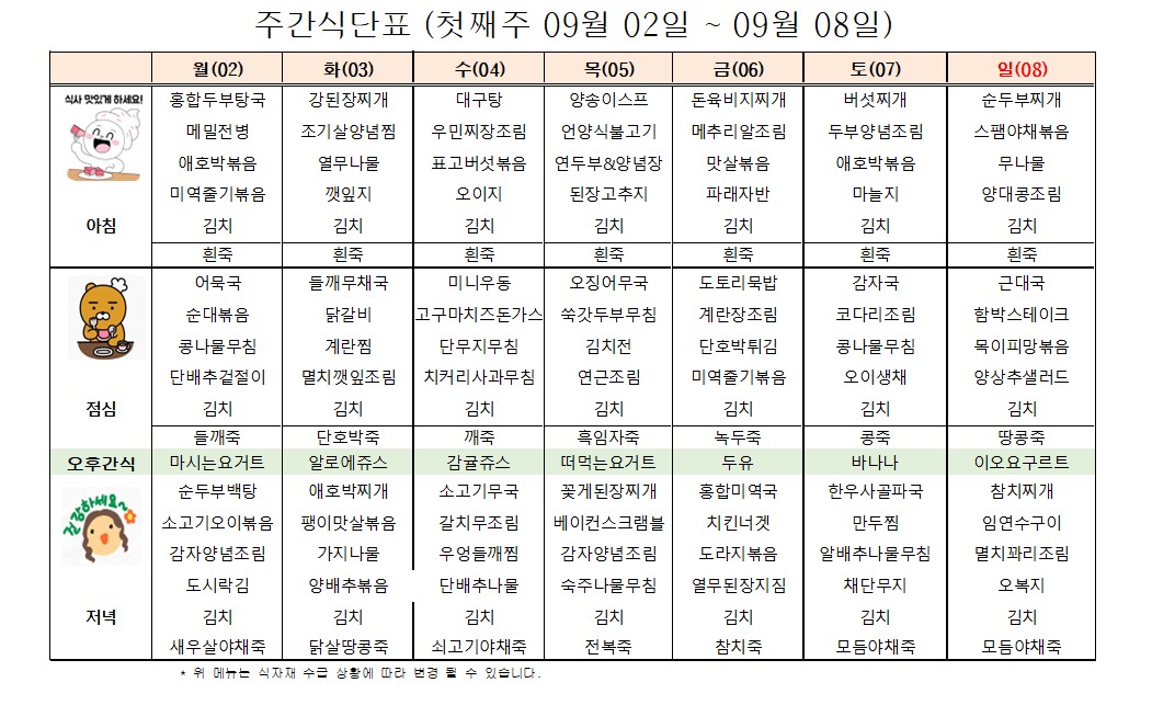 ÇູÇѸ¶À» 9¿ù ù°ÁÖ ½Ä´ÜÇ¥ÀÔ´Ï´Ù
