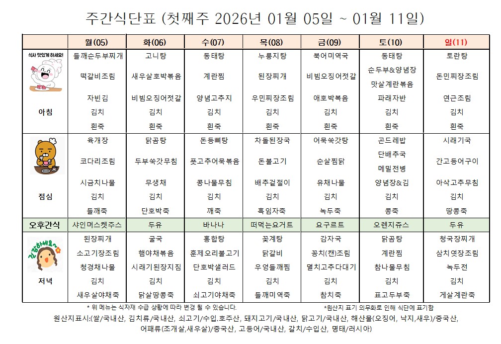 ÇູÇѸ¶À» 1¿ù ù°ÁÖ ½Ä´ÜÇ¥ÀÔ´Ï´Ù.