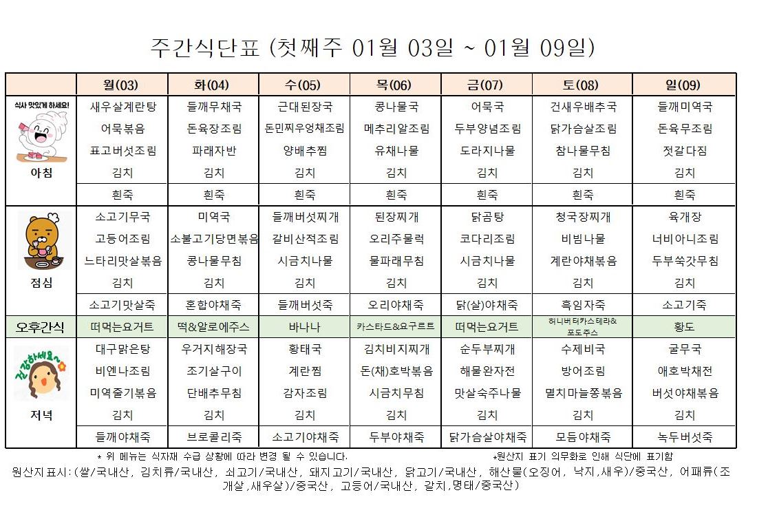 ÇູÇѸ¶À» 1¿ù ù°ÁÖ ½Ä´ÜÇ¥