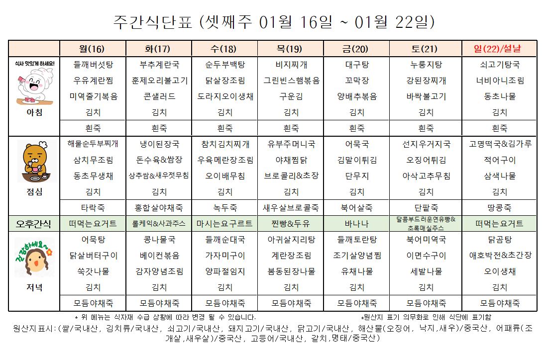 ÇູÇѸ¶À» 1¿ù ¼Â°ÁÖ ½Ä´ÜÇ¥