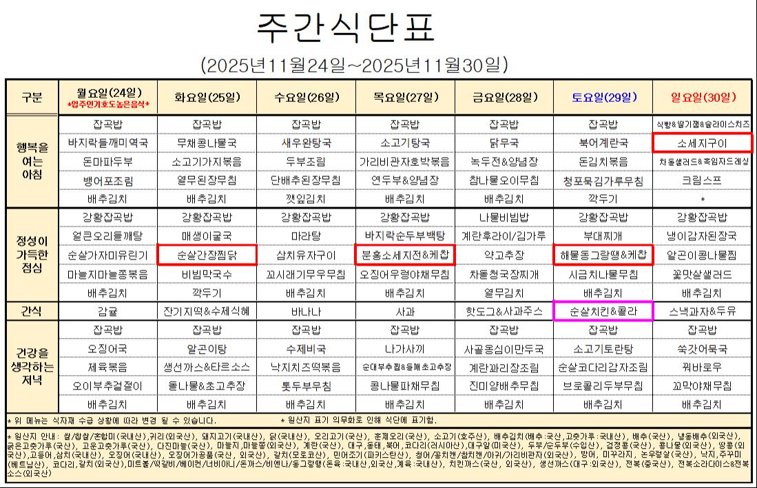 11¿ù 4°ÁÖ ½Ä´ÜÇ¥ÀÔ´Ï´Ù.